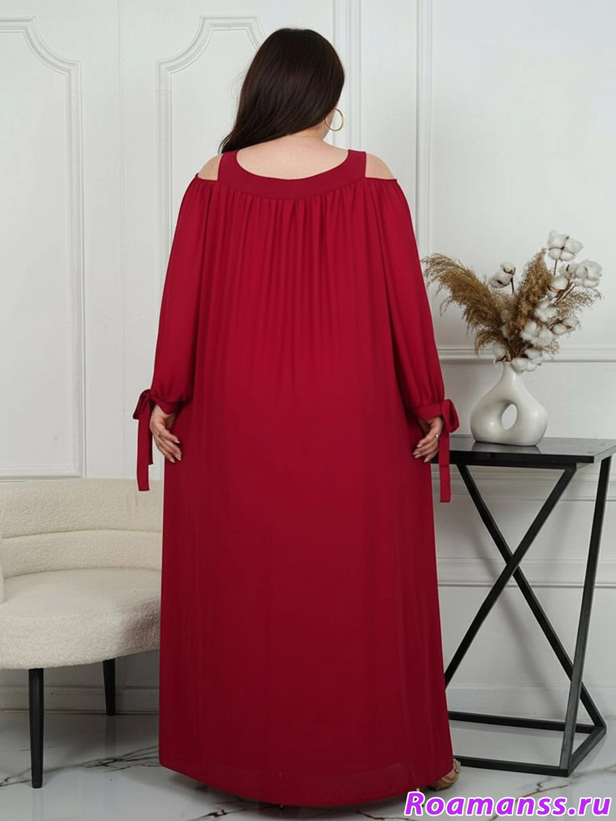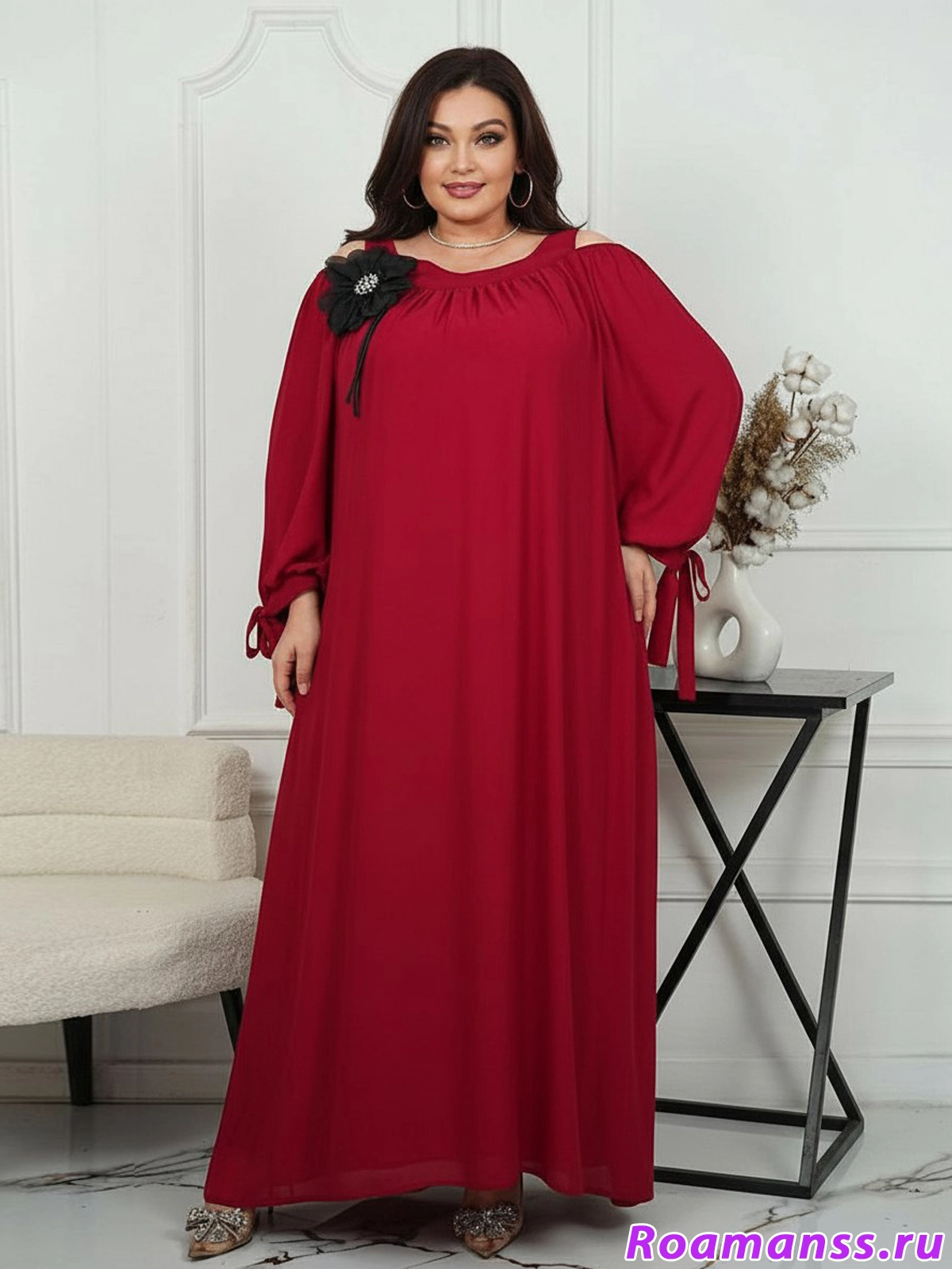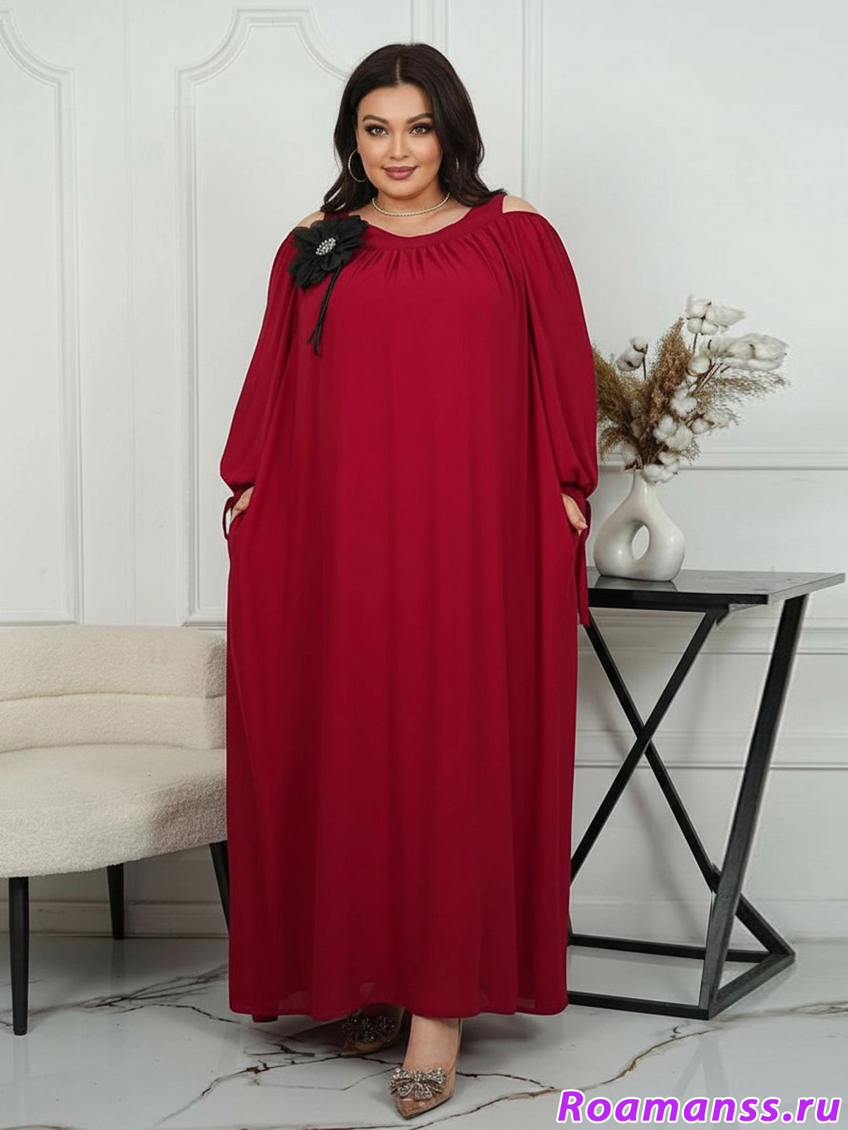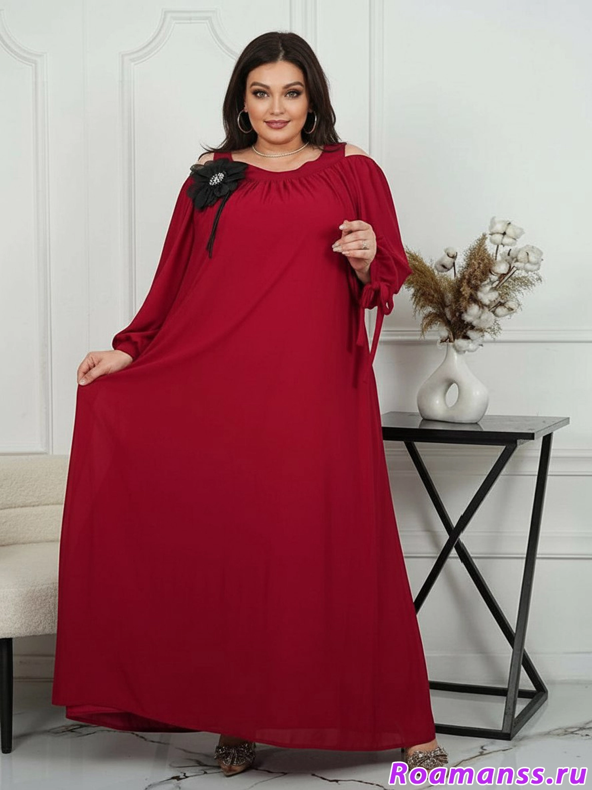 Очаровательное платье Изабель с расклешенным летящим силуэтом! Украшено брошью - цветком со стразами и очаровательными бантиками на рукавах. Это платье станет идеальным выбором для разных случаев! Вырезы на плечах присборены резинкой и придают особый шарм и женственность! Боковые карманы во швах. Вы будите выглядеть потрясающе и чувствовать себя уверенно! Ткань креп шифон, нижнее платье из подкладочного трикотажа. Длина платья 138см.