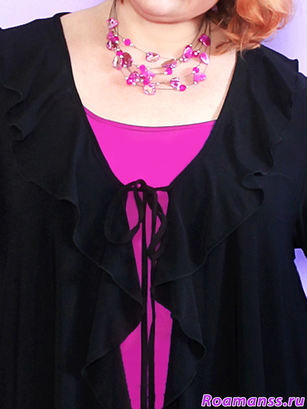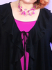 Элегантный женский кардиган больших размеров создан для современных женщин, ценящих комфорт и стиль. Модель удлинённого кроя выполнена из мягкого трикотажа «корейское масло», который красиво драпируется и отлично сидит на фигуре. Изделие украшено рюшами по краю и регулируется с помощью шнурка-завязки на груди. Практичные боковые карманы во швах добавляют удобства, а универсальный чёрный цвет делает стильный кардиган больших размеров идеальным выбором для работы, прогулок и особых случаев. Длина 100см подходит на любой рост. Подчеркните свою индивидуальность с этим трикотажным кардиганом для полных дам!