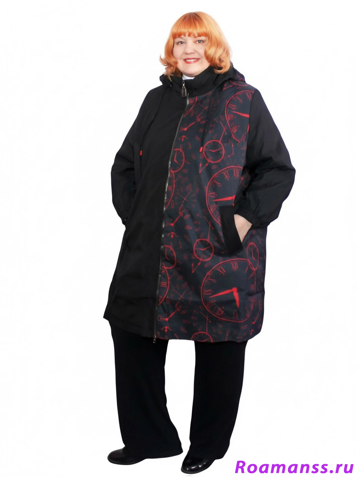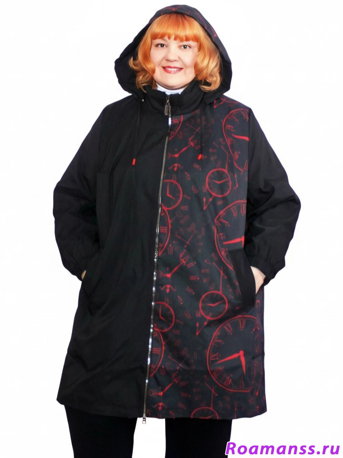 Демисезонная куртка с капюшоном. Застёгивается на молнию. Спереди карманы. Капюшон отстёгивается(на молнии). Куртка на стёганой подкладке с тонким синтепоном. Длина 100см.