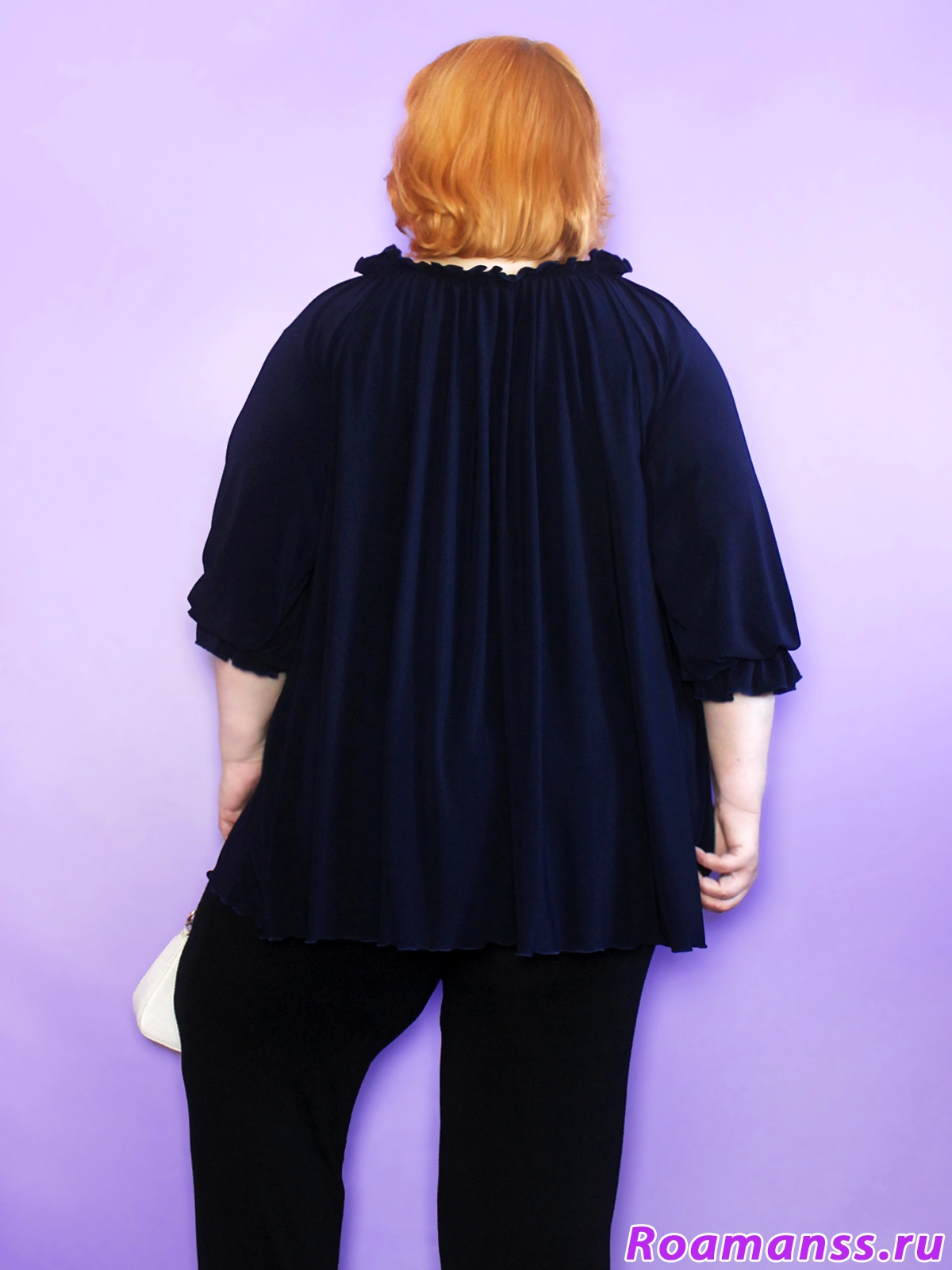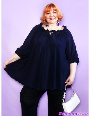 Элегантная туника больших размеров женская из мягкого трикотажа корейское масло - идеальный выбор для офиса, прогулок и особых случаев. Свободный А-силуэт и реглан-рукава с рюшами подчеркивают женственность и скрывают лишнее, создавая стильный и комфортный образ. Туника тёмно-синяя больших размеров легко сочетается с брюками и юбками. Модель подходит для полных женщин, прекрасно смотрится осенью и в межсезонье. Оставайтесь в тренде - выберите стиль и комфорт для себя!.