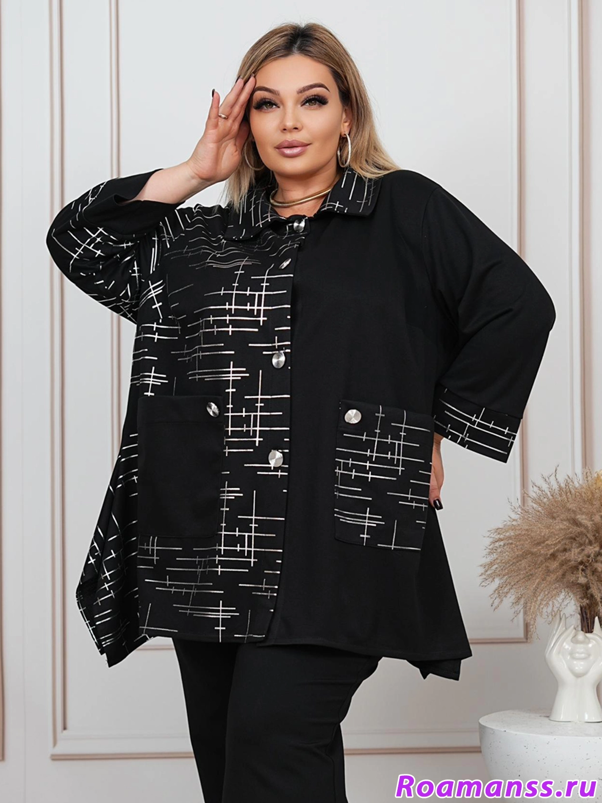 Туника-рубашка с серебристым принтом
