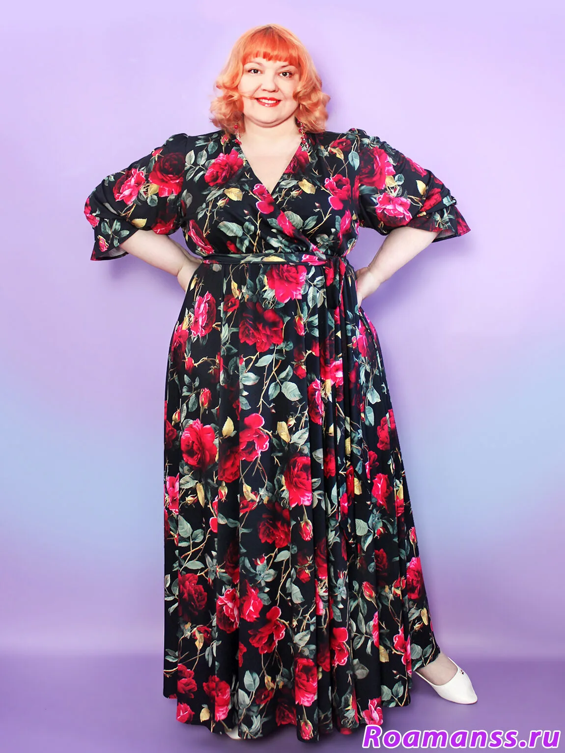Окунитесь в атмосферу элегантности с этим длинным платьем больших размеров из корейского трикотажа масло. Модель с расклешённой юбкой-шестиклинкой легко подчеркнет талию благодаря эластичной резинке и широкому поясу. Облегающий топ с вырезом-«запах» красиво удлиняет шею, а рукава фонарики с рюшами придают образу особую женственность и шарм. Платье больших размеров праздничное - идеальный выбор для особых случаев, но не менее уместно и в повседневной жизни. Оно визуально стройнит и создаёт безупречный силуэт. Позвольте себе выглядеть великолепно в любое время! Длина 150см