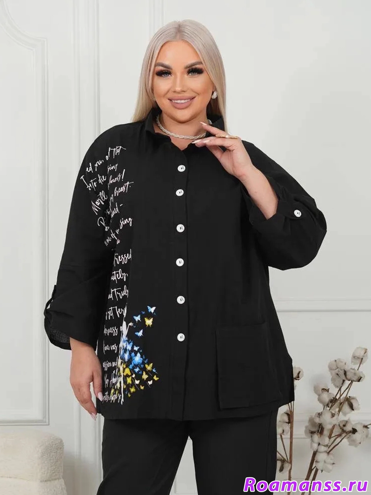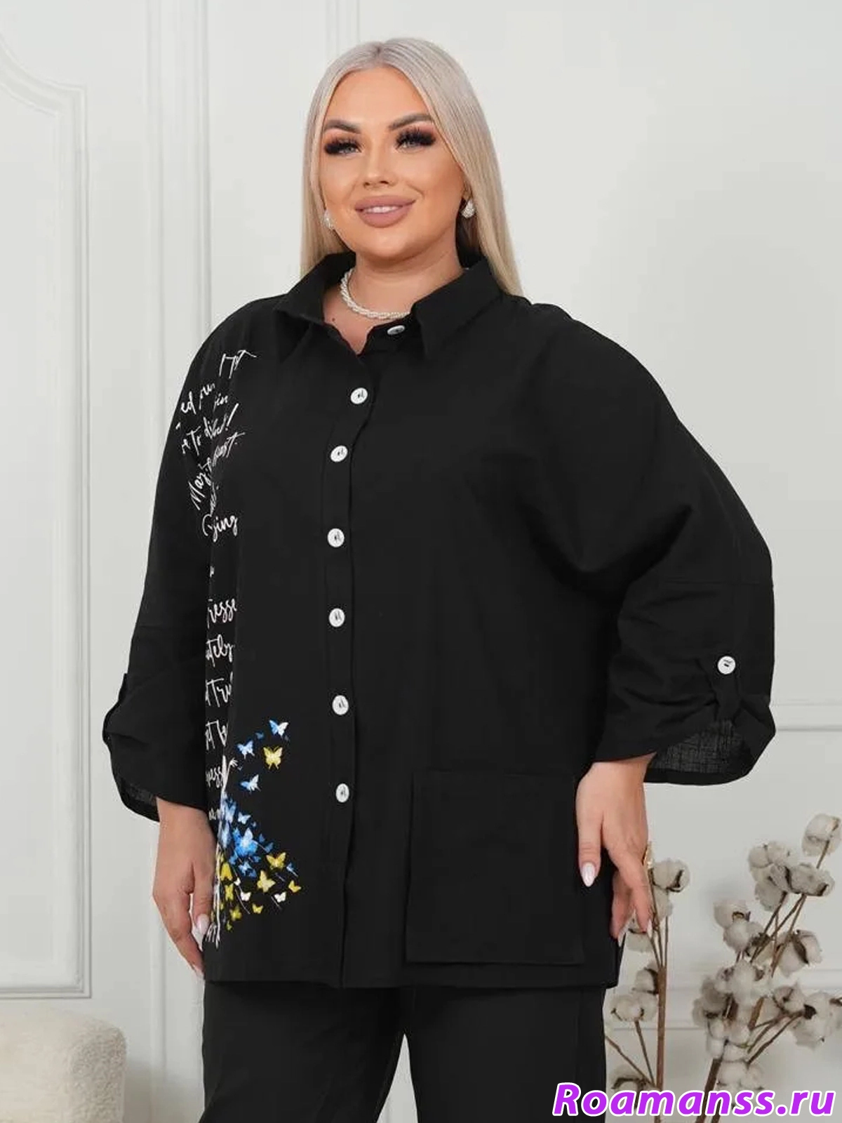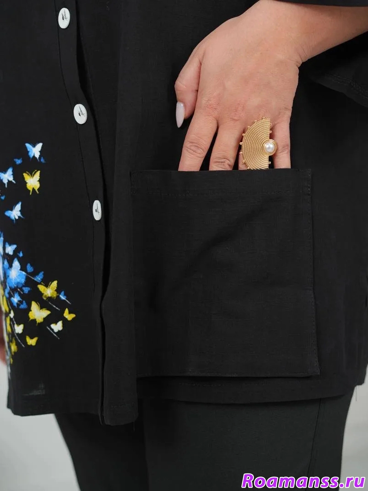 Стильная рубашка «Бабочки» выполнена изо льна. Свободный крой обеспечит максимальный комфорт на протяжении всего дня! Застёгивается на пуговицы. Спереди накладной карман. Длина рукава регулируется хлястиками. Идеальна для весенних и летних образов! Длина 80см.