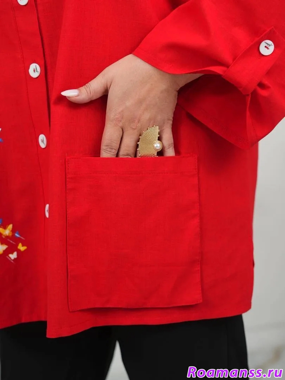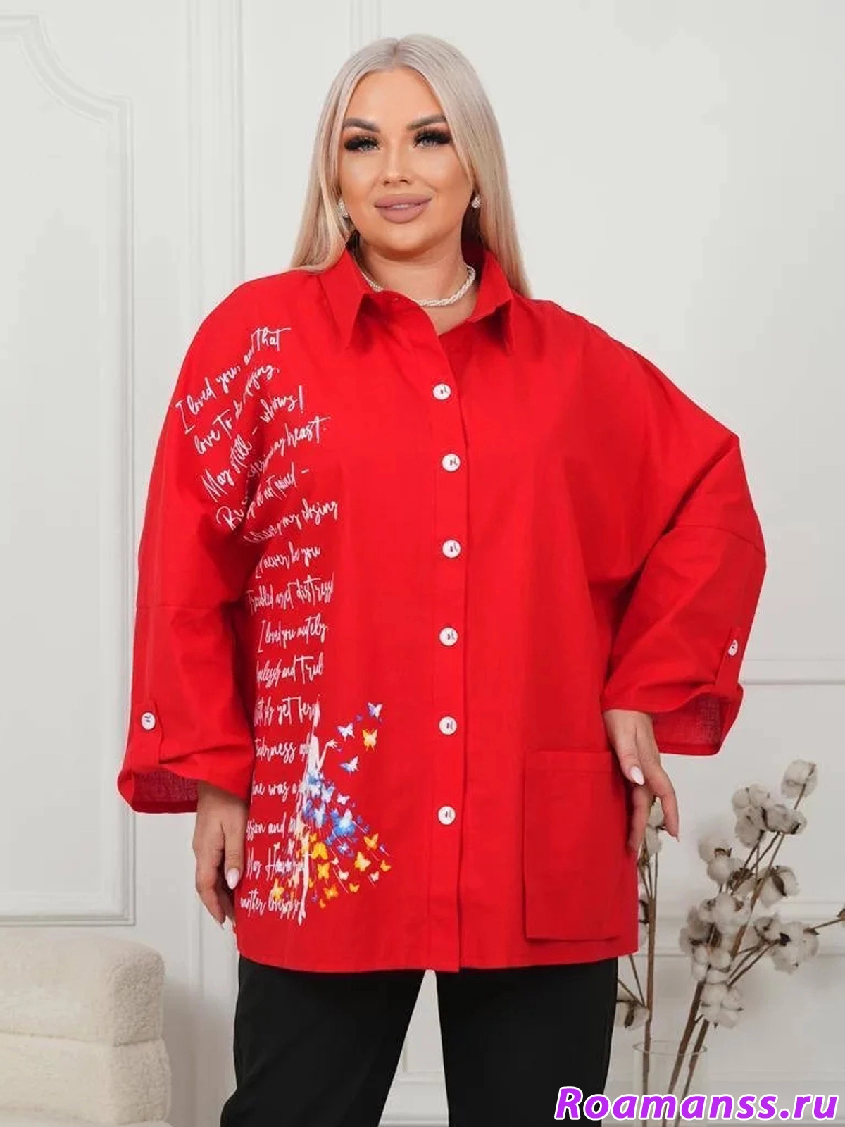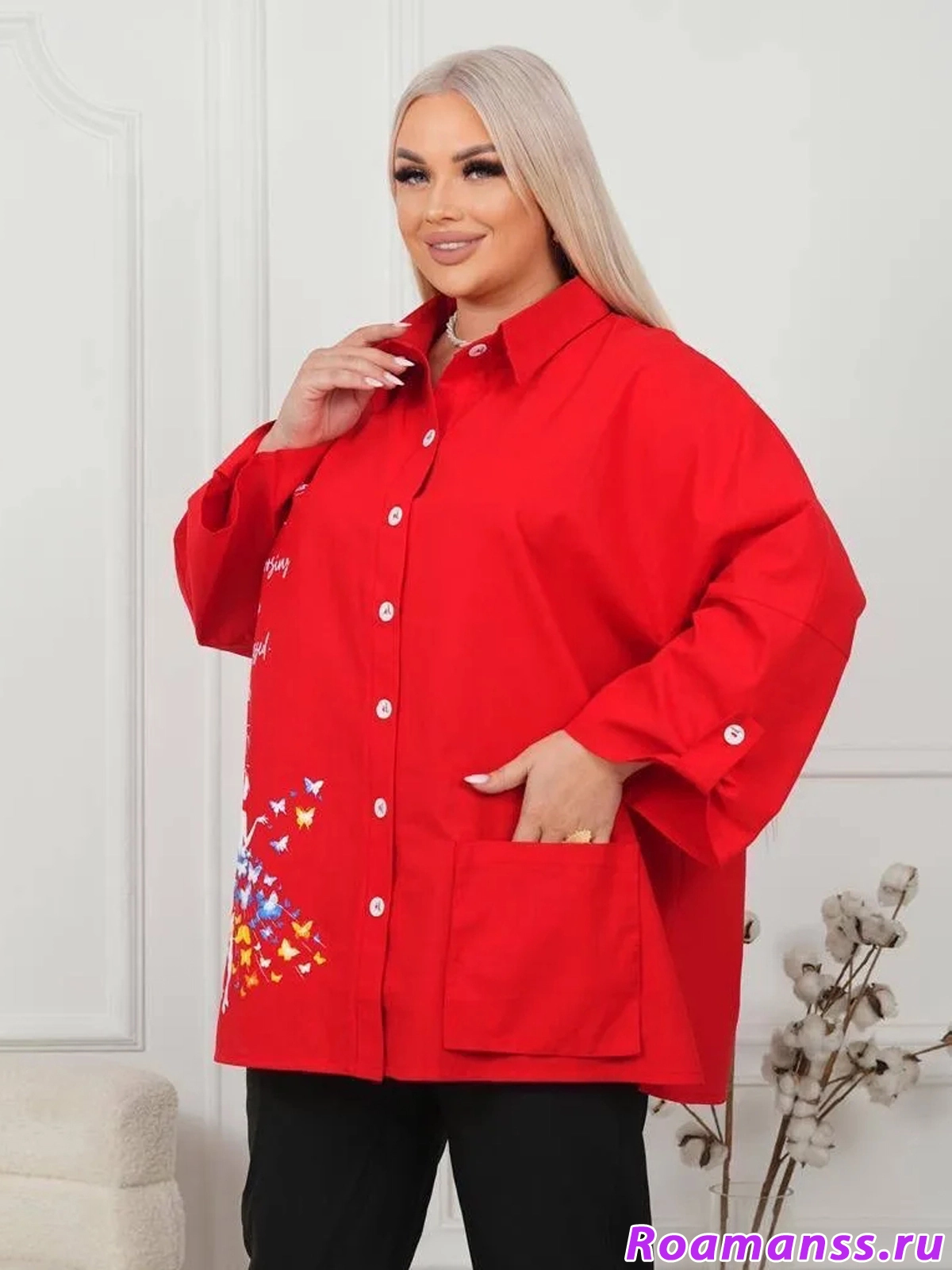 Стильная рубашка «Бабочки» выполнена изо льна. Свободный крой обеспечит максимальный комфорт на протяжении всего дня! Застёгивается на пуговицы. Спереди накладной карман. Длина рукава регулируется хлястиками. Идеальна для весенних и летних образов! Длина 80см.