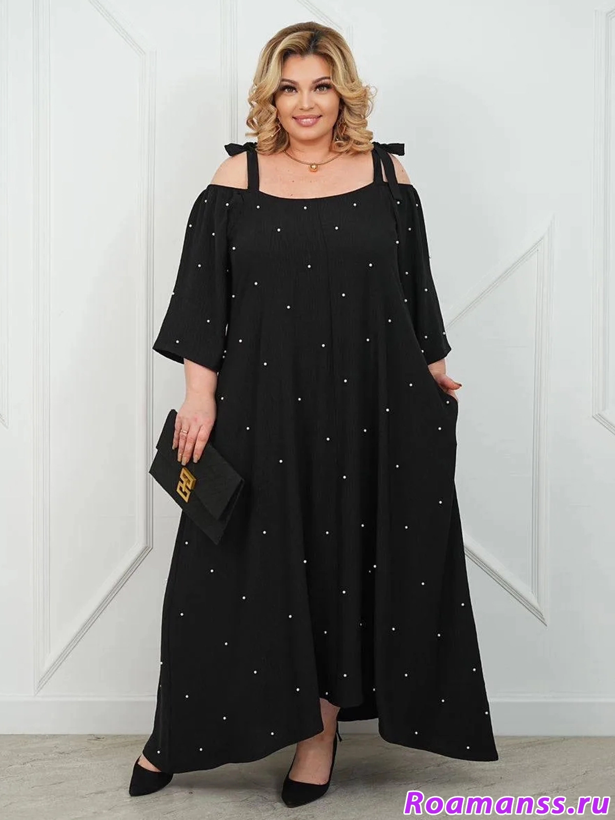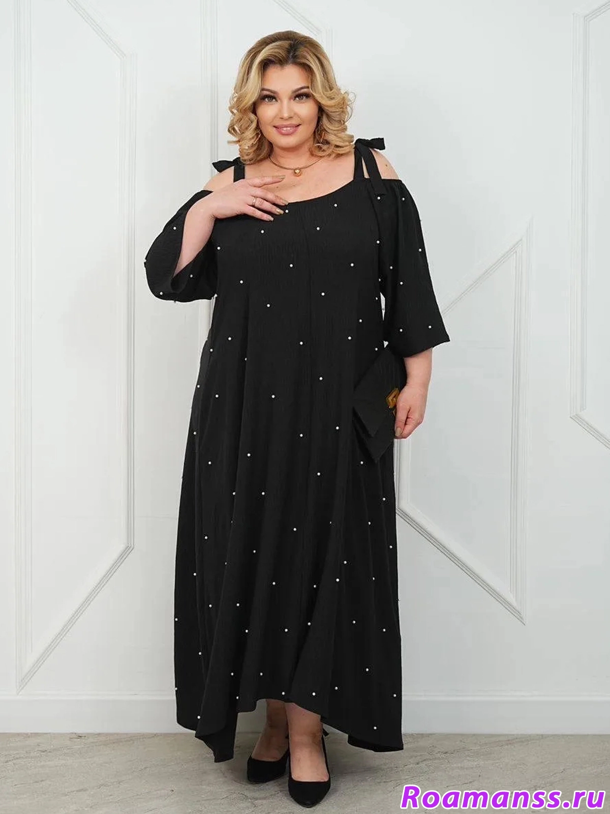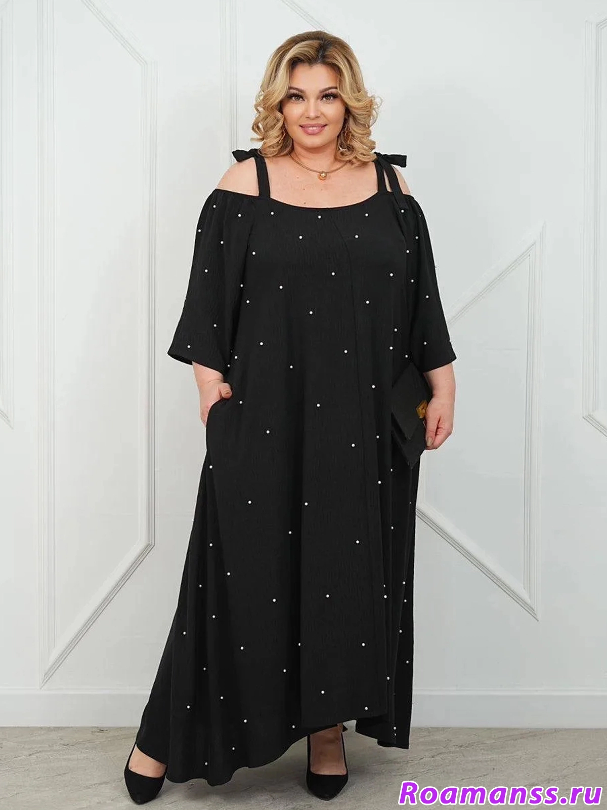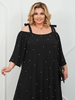 Платье "Барбара" - воплощение элегантности и комфорта для женщин plus size. Эта модель создана специально для тех, кто ценит стиль, удобство и изысканность в каждом образе. Шикарный черный цвет визуально стройнит, а свободный крой с рукавом-реглан мягко подчеркивает достоинства фигуры, создавая легкий и женственный силуэт.