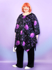 Эта нарядная туника больших размеров станет изюминкой вашего гардероба. Плотная и гладкая ткань Барби с ярким цветочным принтом приятно лежит на фигуре и отлично держит форму. Свободный сильно расклешённый фасон с эластичной горловиной и рукавами прекрасно подходит для полных женщин, скрывая недостатки и создавая женственный, стильный образ. А рукава формы реглан длиною три четверти, создают дополнительный комфорт и подходят на любую длину рук. Идеально для праздников и повседневных выходов! Длина от плеча 95-105см.